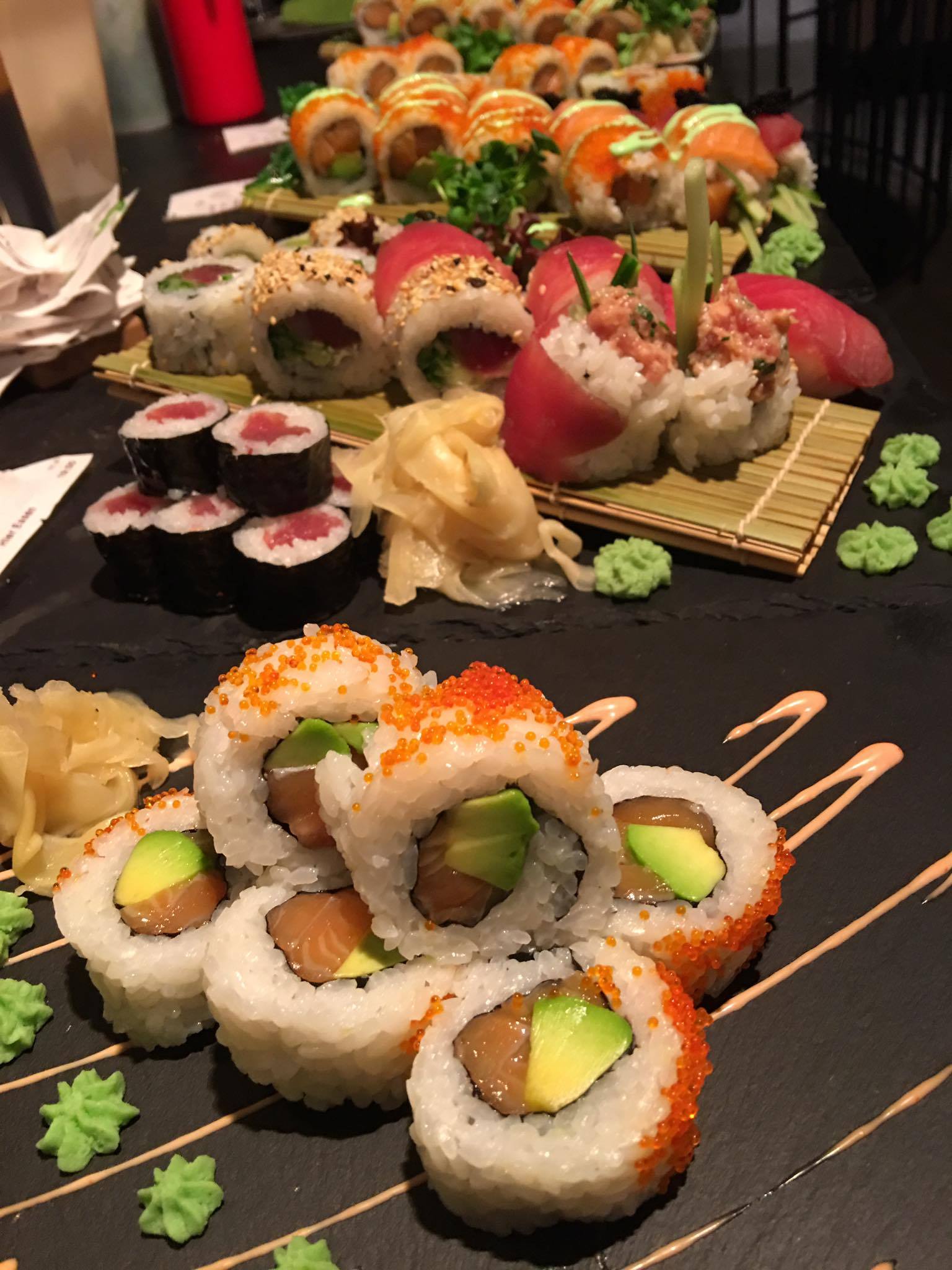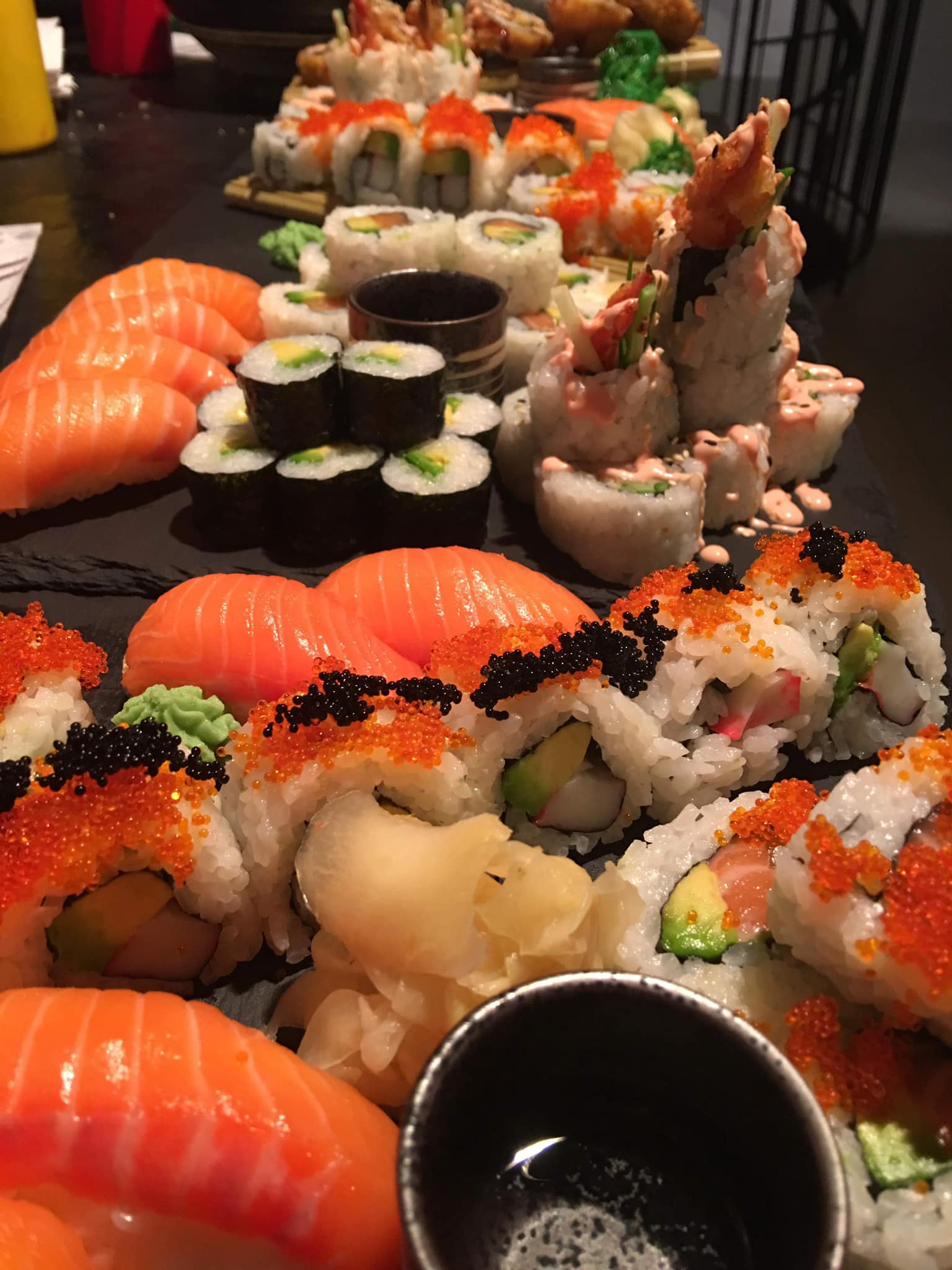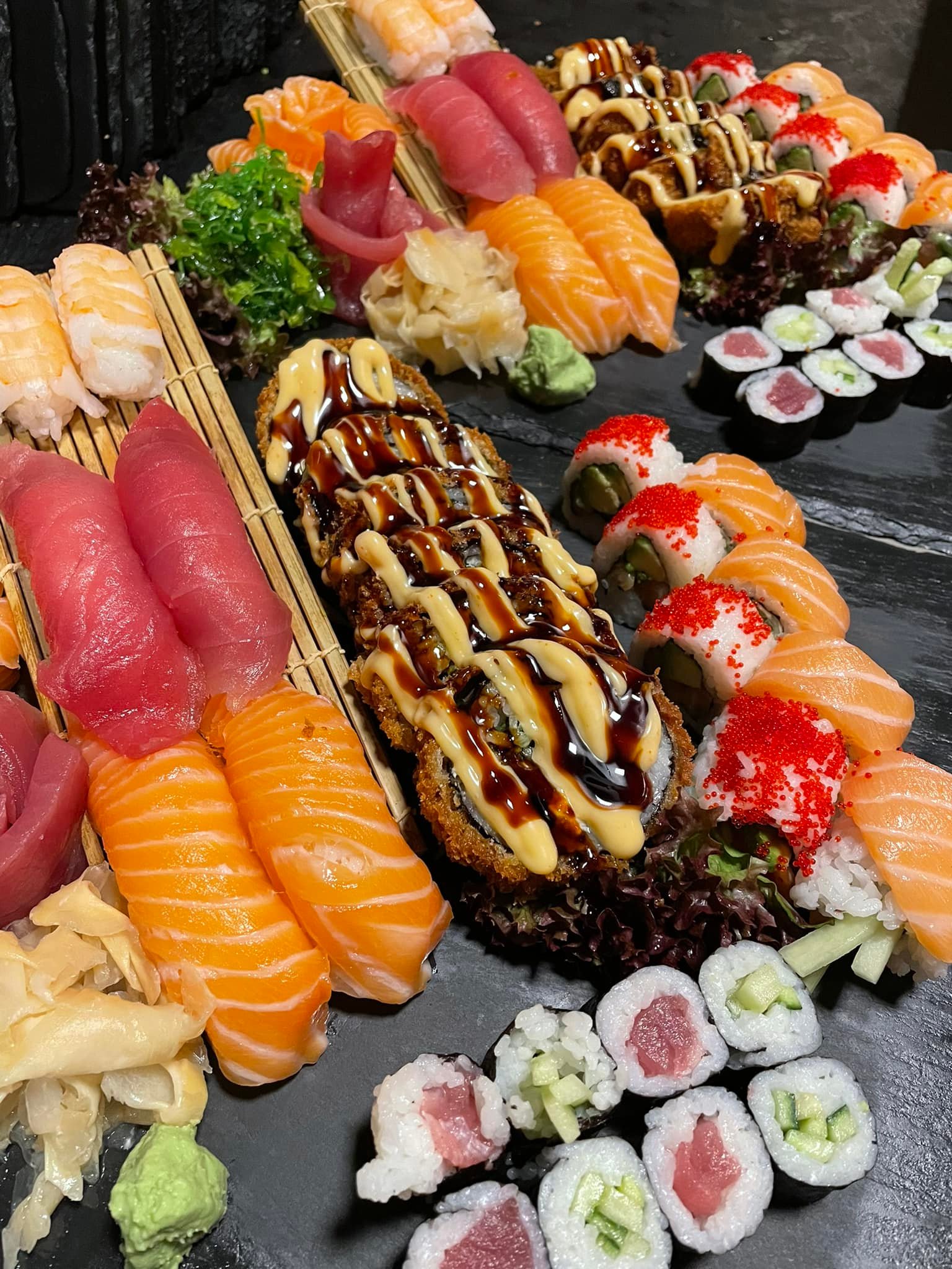2 Sake, 2 Maguro, 2 Ebi Nigiri, 6 Crunchy Sake, 4 Sake 1.0., 4 Tuna 1.0., 4 Sake, 4 Avo Maki