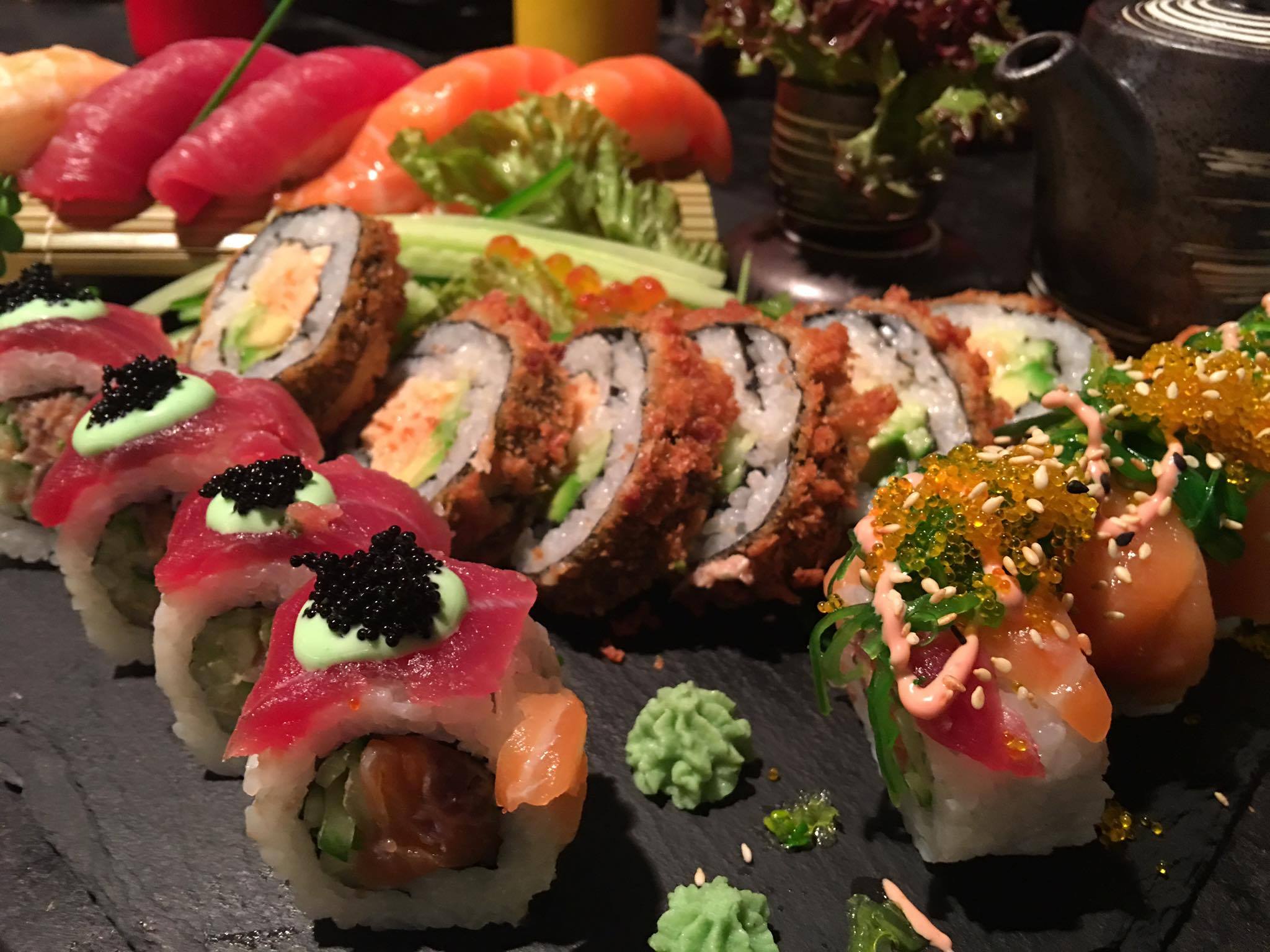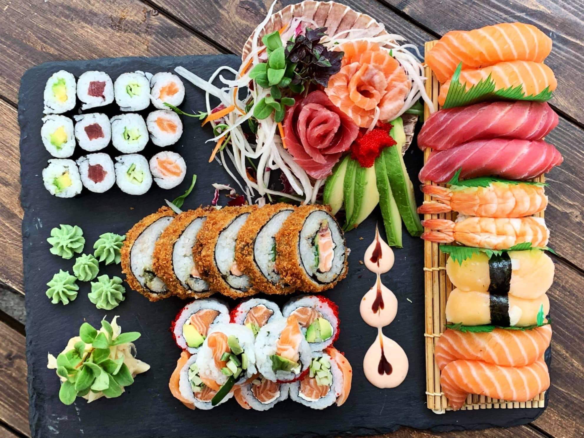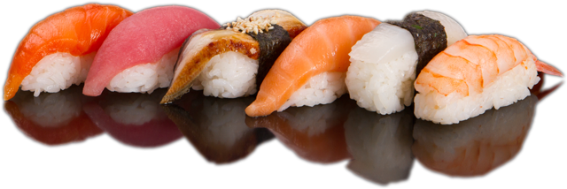 Thunfisch, Lachs, Garnelen, Aal, Surimi, Dakohsmuschen