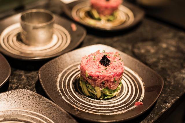 gewürfelte Thunfischfilet mit hausgemachter Aoli. Avokadostücke & Kräutermischung
