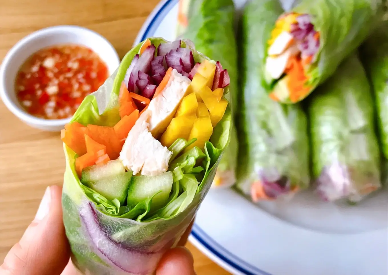 Gỏi cuốn, auch bekannt als vietnamesische Frühlingsrollen oder Sommerrollen, ist ein beliebtes Gericht aus Vietnam. Sie bestehen aus dünnen Reispapierblättern, die mit einer Mischung aus frischen Zutaten gefüllt sind. Typische Füllungen sind Garnelen, Schweinefleisch, Reisnudeln, frische Kräuter wie Minze und Koriander sowie Salat.